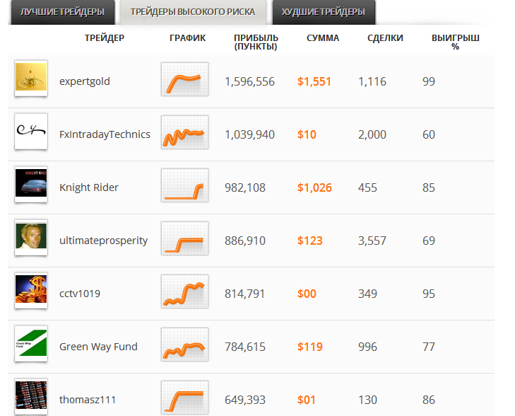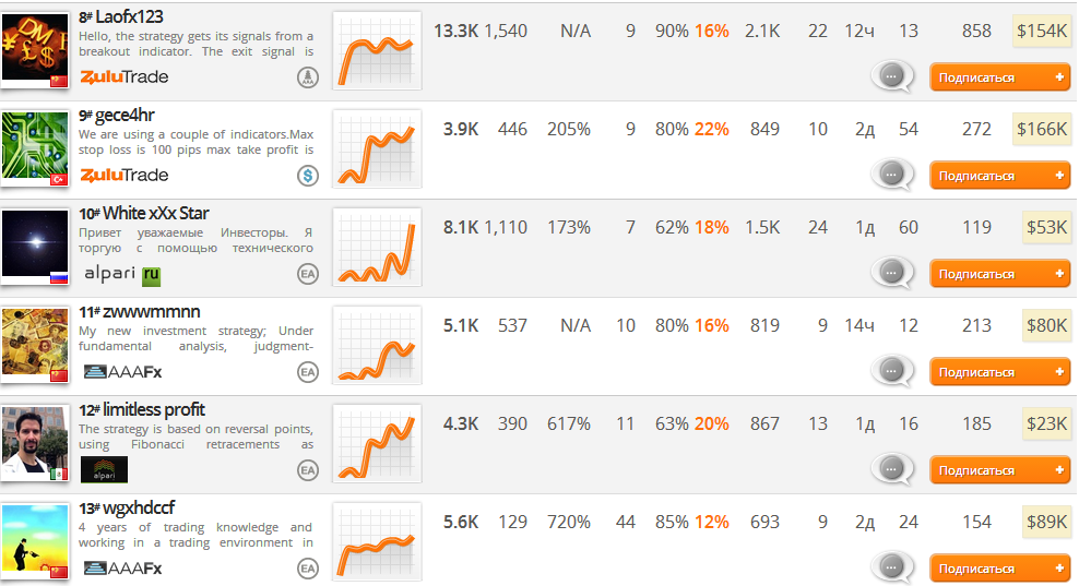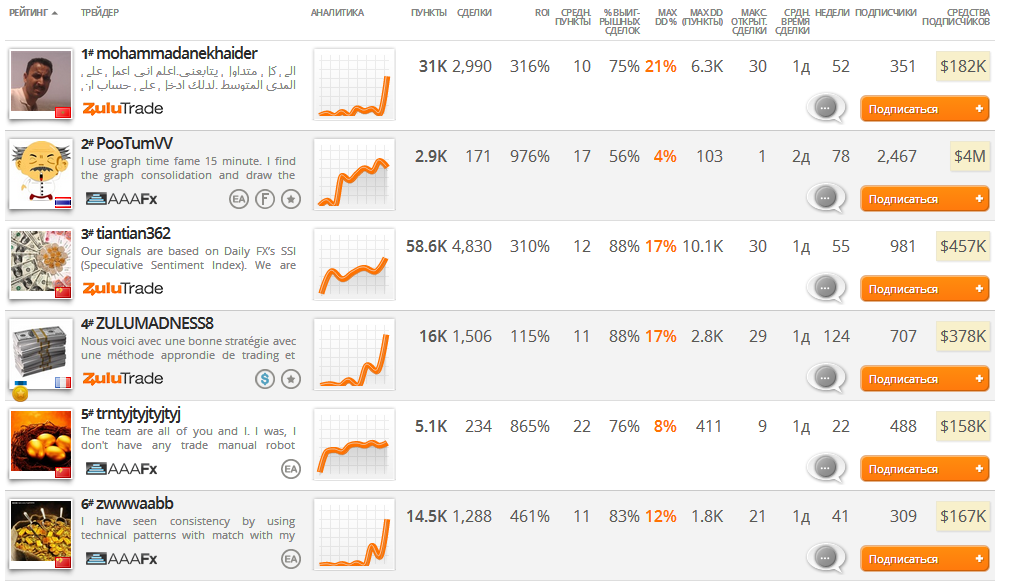 Рейтинг управл�ющих трейдеров (по�тавщиков �игналов) в ZuluTrade за 2014 год